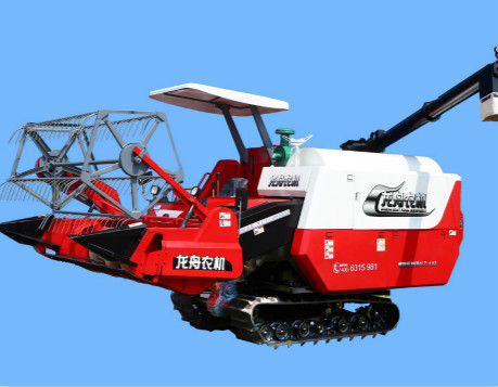 Longzhou LZ series harvester products: The company's independent research and development, a new type of farming machinery with independent intellectual property rights, harvesting effortlessly, without shoulder transportation, truly efficient harvesting and easy unloading of grain.